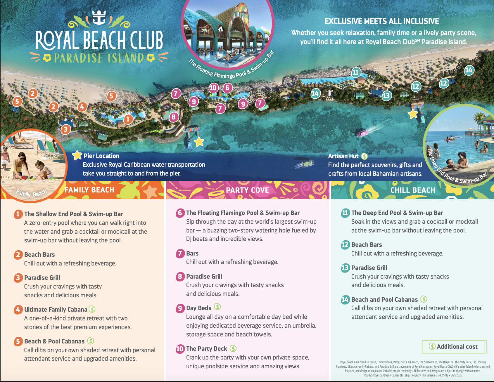 Pasagerii care viziteaza Nassau pot cumpara de pe site-ul Royal Caribbean permisele de o zi all-inclusive, care ofera acces la experientele si facilitatile de beach day ale clubului.