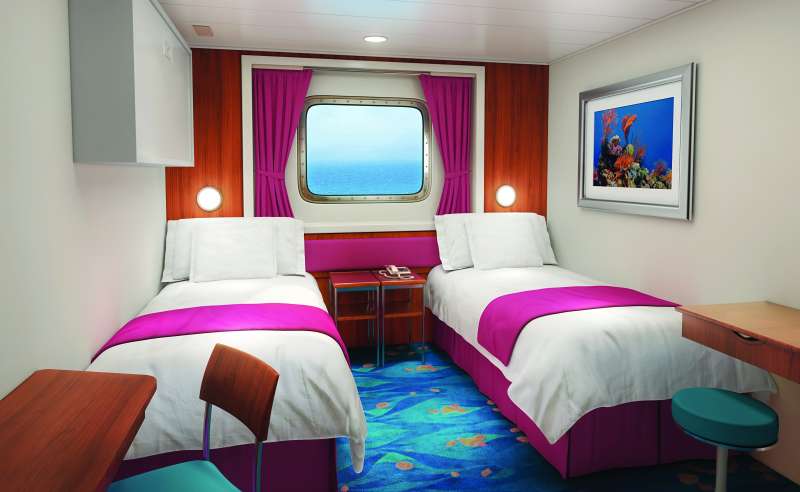 Cabina exterioara cu geam pune la dispozitia pasagerilor doua paturi Twin ce se pot converti intr-unul Queen-size, paturi suplimentare la cerere pentru a putea acomoda pana la inca 2 pasageri, baie privata cu dus, spatiu de depozitare a bagajelor, TV, mini-bar, uscator de par si seif. Geamul cabinei nu poate fi deschis.