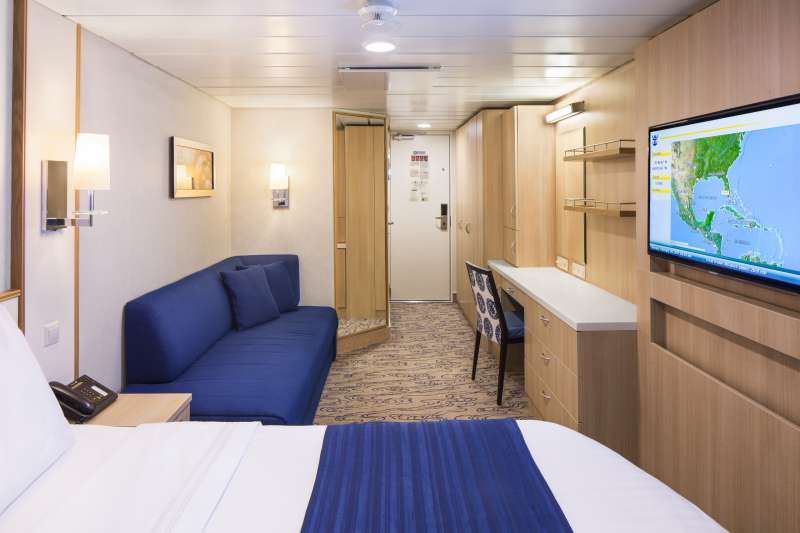 Cabina interioara are in alcatuire 2 paturi twin ce se pot converti intr-un pat de tip King Royal, o zona de zi cu canapea (unele cu paturi suplimentare suspendate) si baie privata. Acestea sunt cabine de tip unic deoarece au geamuri inclinate cu vedere la Royal Promenade de unde puteti vedea activitatile de pe pomenada incluisiv parada. Nu uitati sa pastrati perdelele inchise pe timp de noapte deoarece exista cabine asemanatoare peste drum. Suprafata cabina: 15 mp.